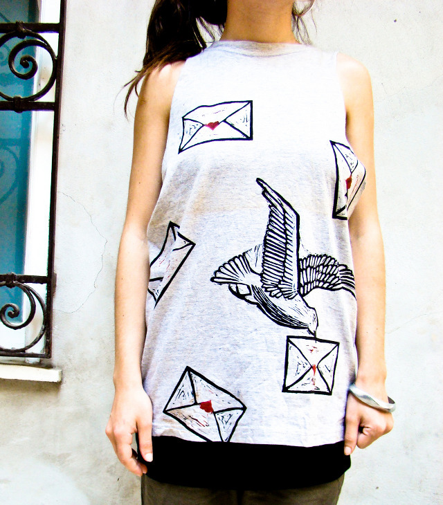 Linocut prints on vintage wear.